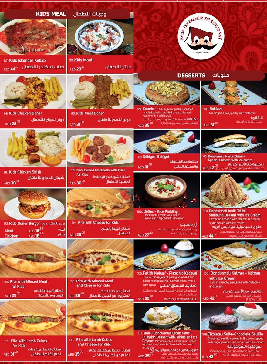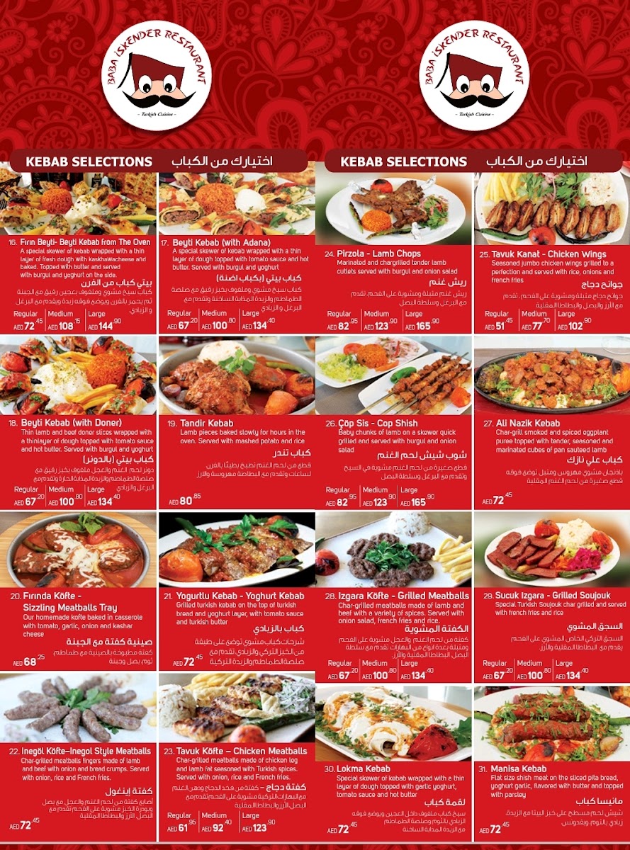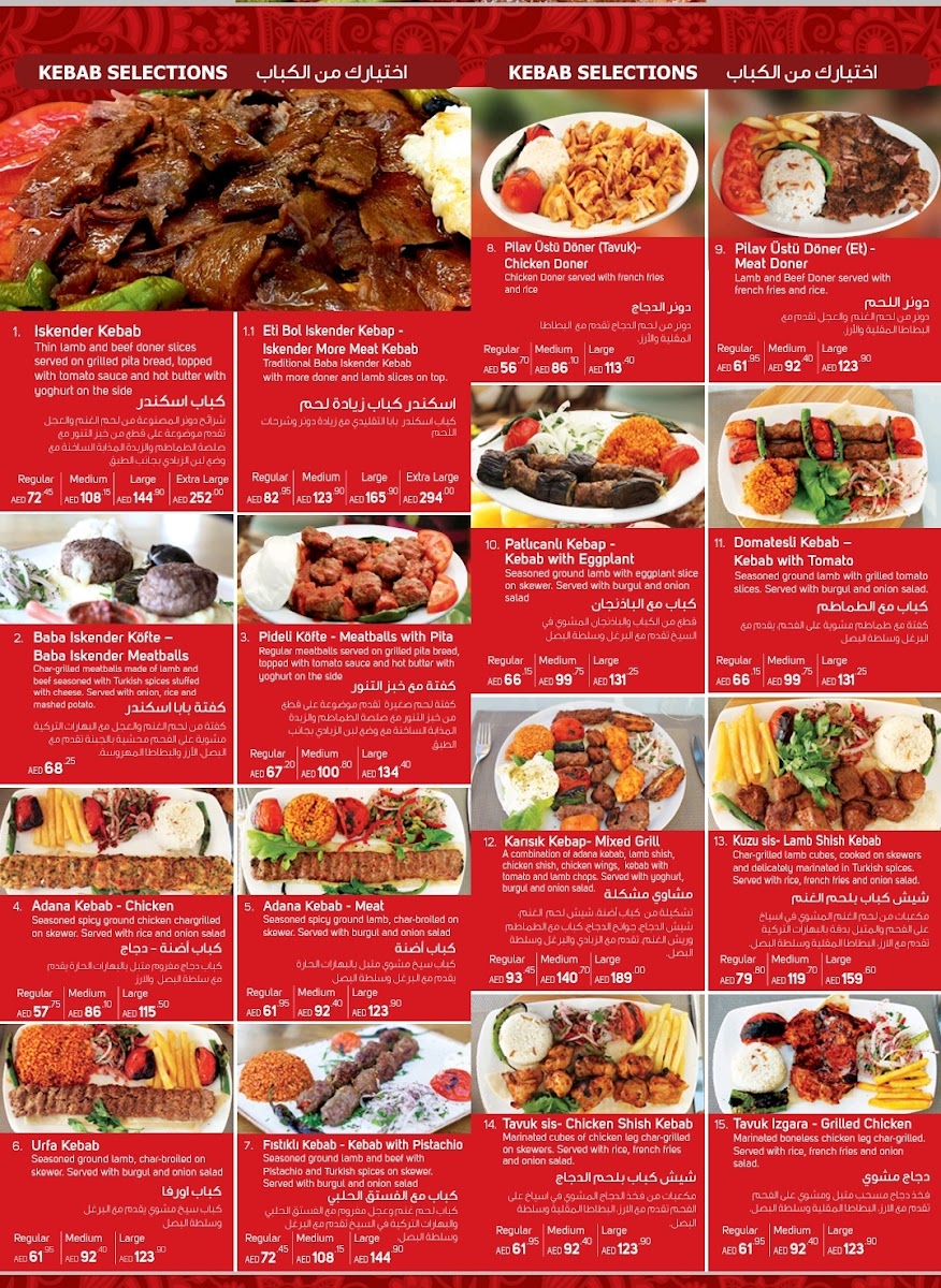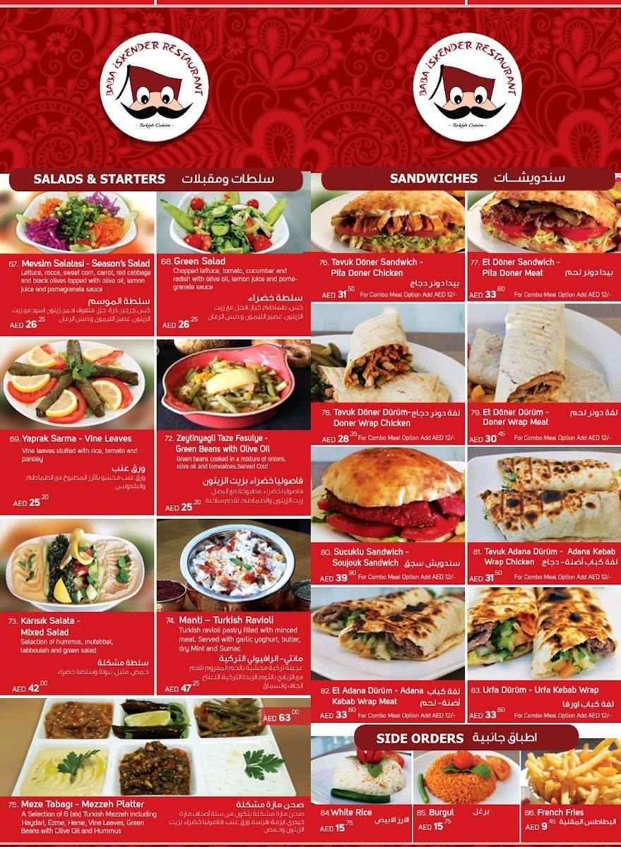Welcome to Sultan Baba Iskender, located in the vibrant Dubai Festival City. This gem offers an authentic taste of Turkish cuisine, renowned for its flavorful dishes and warm hospitality. The menu features an array of tantalizing options, from savory Doner Dürüm wraps to hearty Tandir Kabab. Each dish is crafted with fresh ingredients, ensuring a delightful dining experience. The standout, Iskender Kebab, has received rave reviews for its succulent meat and perfectly balanced flavors, reminiscent of a true Turkish feast.